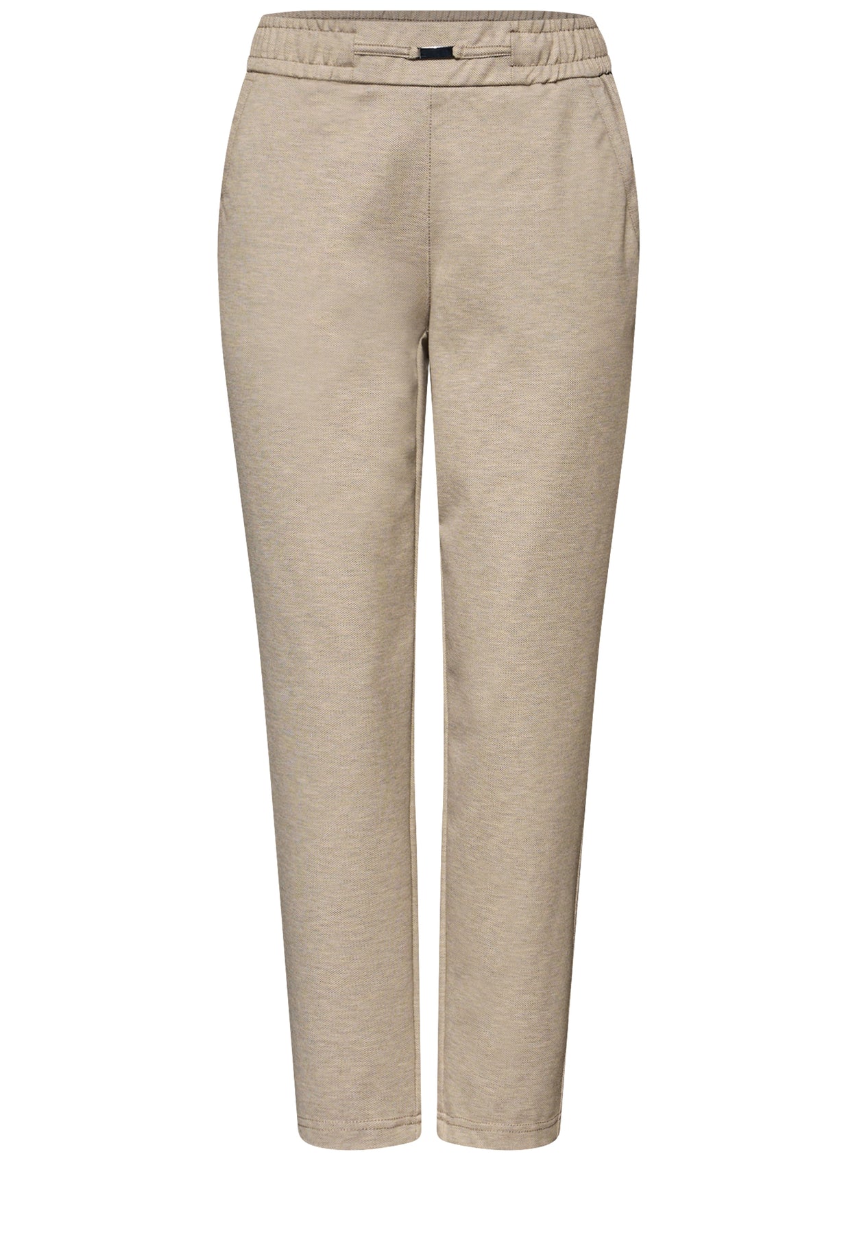 Die Hose im Style Bonny von Street One für Damen kombiniert einen sportiv-eleganten Melange-Look mit hohem Tragekomfort. Der elastische Bund mit Schnallendetail und die schmalen Beine sorgen für eine moderne Silhouette im Loose Fit. Perfekt für lässige Looks mit stilvollem Twist. Hose im Loose Fit Mid Waist und Slim Legs Seitliche Taschen Elastischer Bund mit Schnallendetail Piquée Melange Look Material: 46% Polyester, 29% Polyamid, 15% Viskose, 10% Elasthan